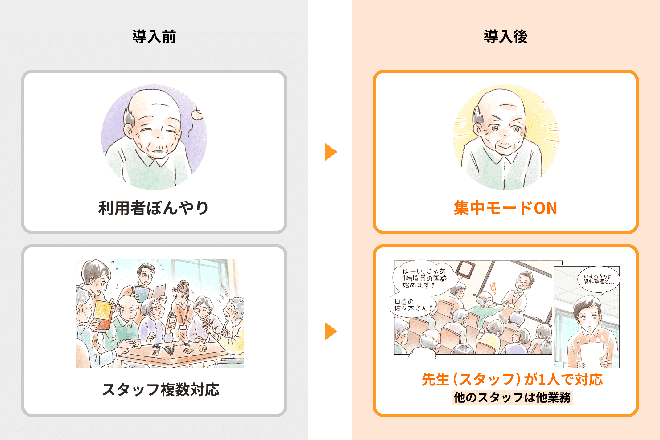 施設の差別化や業務改善など様々な観点でおとなの教科書の活用方法をご説明いたします