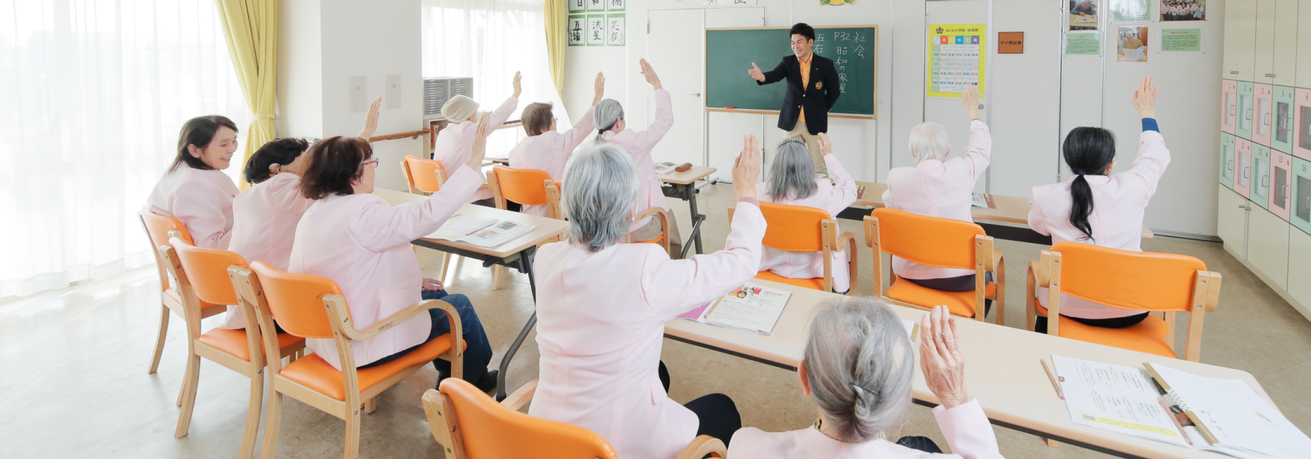 学校式介護「おとなの学校メソッド」を導入した目的のは2つあります。1つ目は、介護スタッフにもっと光が当たるような、楽しい仕事をしてもらいたいと常々考えていたからです。2つめの目的は、通所する認知症の方々にご満足いただくことでした。「おとなの学校メソッド」の説明会に参加し、説明を聞くとスタッフに喜んでもらえることが確信できたので、すぐに導入をしました。